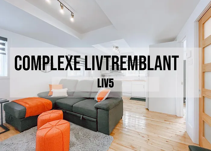 Apartament Complexe Livtremblant By Gestion Elite - Liv5 Mont-Tremblant o powierzchni 42 m^2 wychodzi na ogród i zapewnia gościom Wi-Fi oraz parking na terenie. Brind'O Aquaclub jest w prawie 3 km, a Wyciag krzeselkowy Le Soleil - prawie 10 min jazdy samochodem.